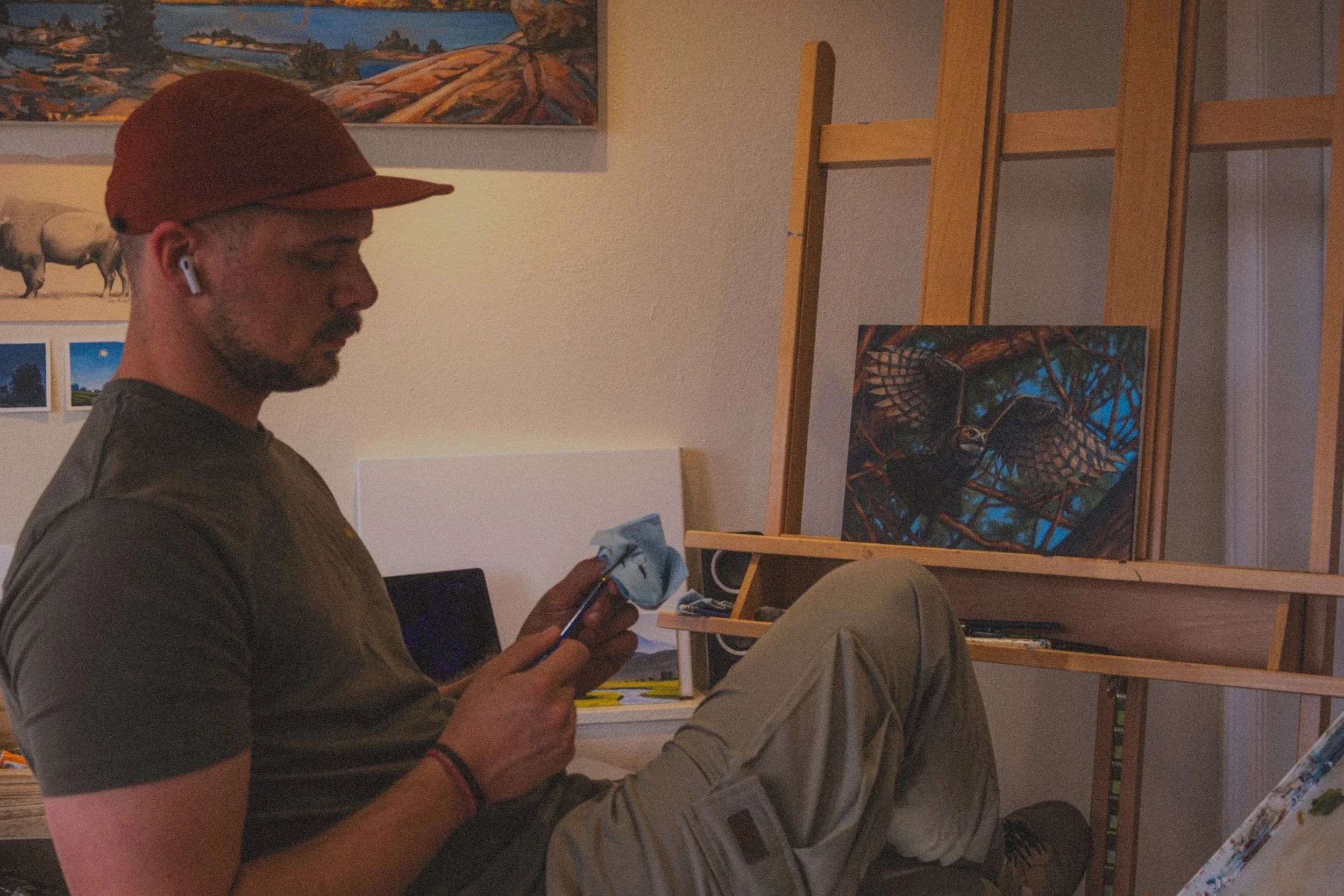 Andrew Kneeland is a Rock Springs Wyoming artist, dedicated to exploring the beauty of his home-state through fine art. He has been painting and sketching for over 15 years, developing a realistic style of painting that reflects his love of wildlife and landscapes. In 2021, he opened his own art gallery and studio in Downtown Rock Springs, Kneeland Fine Art. Here he incorporates his paintings, pottery, fine art prints, and photography into a multifaceted art exhibition, as well as offering art classes for kids, and painting workshops for adults.